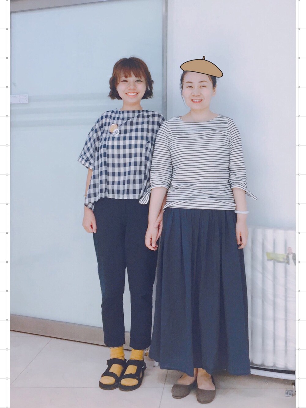 ブルー系のトップスを着用したレディースの秋コーディネートの1枚目の写真