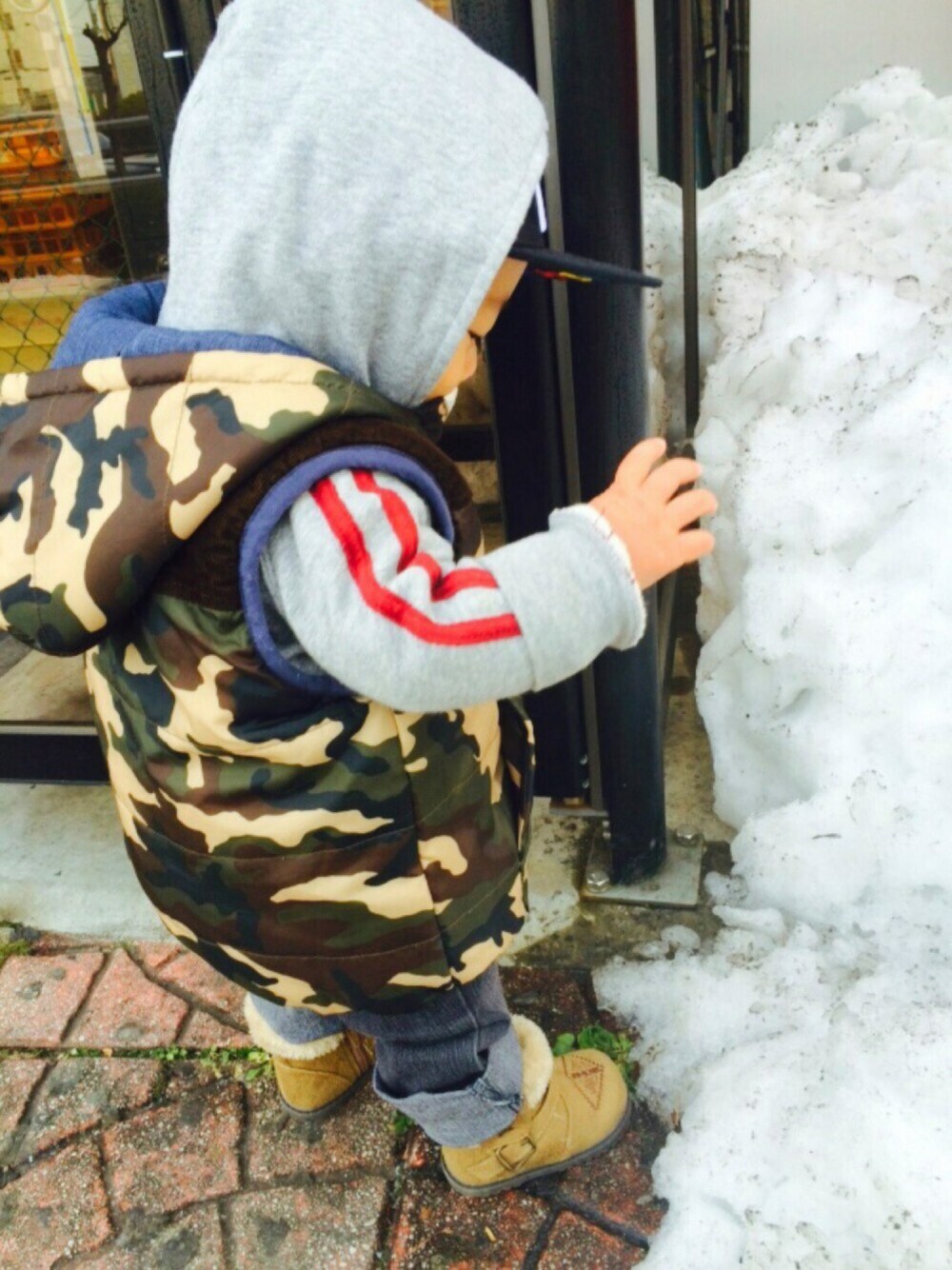 残り雪が気になるけど、触れないからフミフミ👣 最近、色んな人にタッチ🙌したい病(๑•́︿•̀๑) おじさんは嫌だな…と思ってしまう母でしたσ(^_^;)