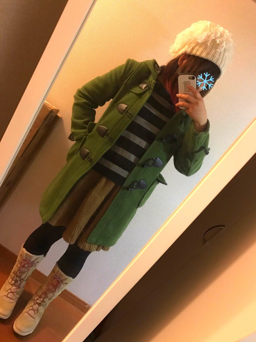 大雪15cmくらい積もってるまだ降っとる ニット帽はUNIQLOのリメイク