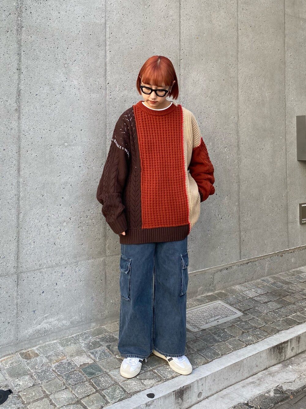 パッチワークデザインが 一枚でおしゃれ見えするニットです◎ instagram ▷ pppkko2525