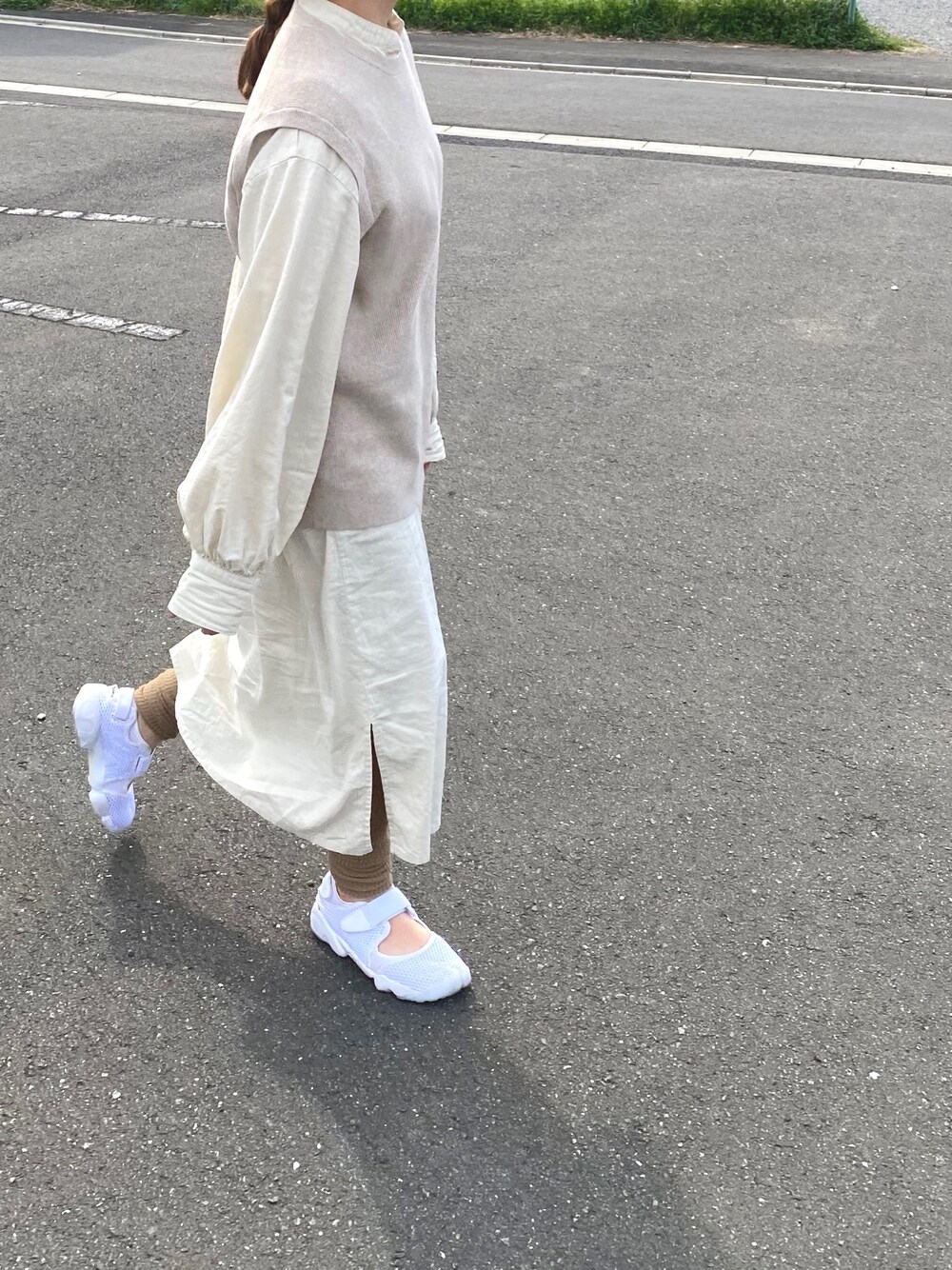 膨張コーデ エアリフト素足で履けるー😋