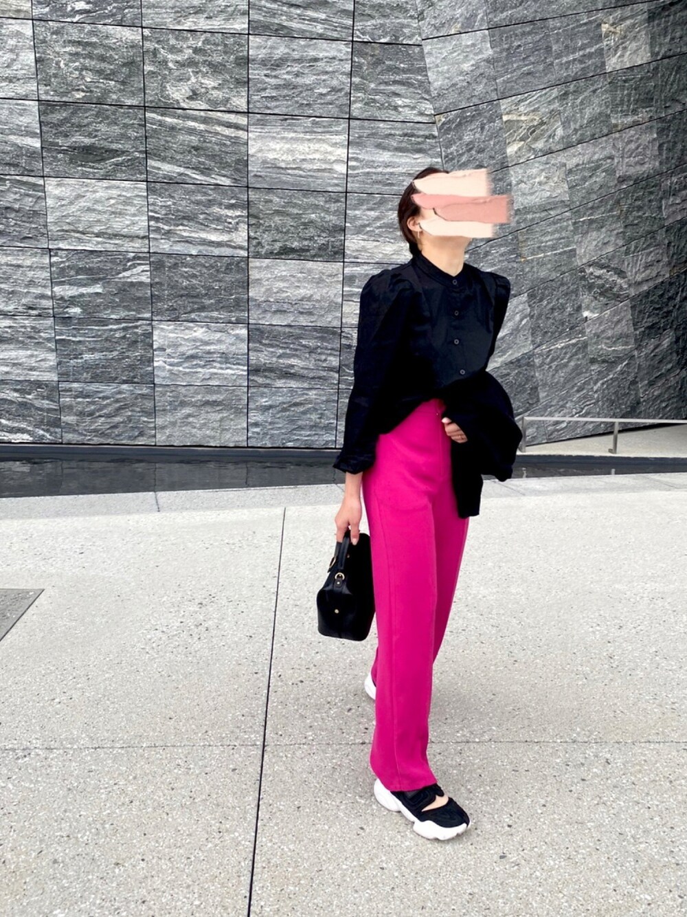 爆笑しています♥︎ 理由は忘れましたw ジャストサイズなシャツがお気に入り🤍🖤