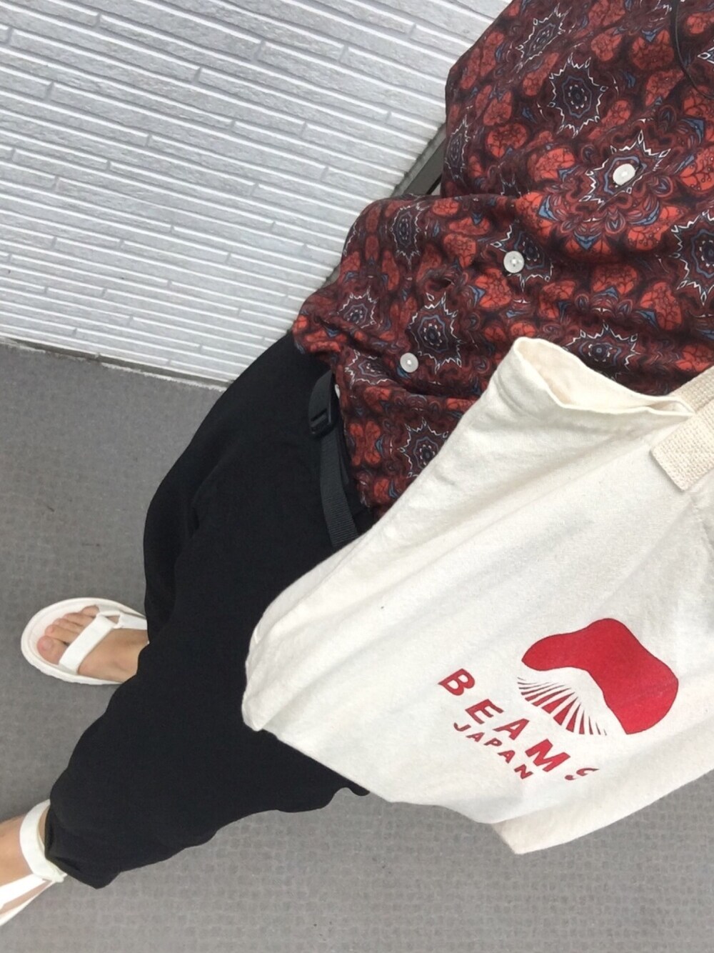 ユウトのトートバッグ「evergreen works ×BEAMS JAPAN / 別注 ビームス ジャパン ロゴ トートバッグ」を使ったコーディネート