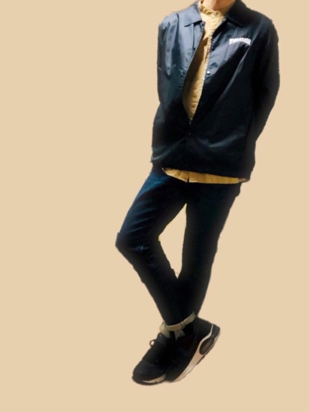 ポキB@ユニクロ勉強家(相互)のスニーカー「NIKE ナイキ AIRMAX COMMAND LEATHER ナイキ エア マックス コマンド レザー 749760-001 ABC-MART限定 *001BLACK/ANTHR」を使ったコーディネート