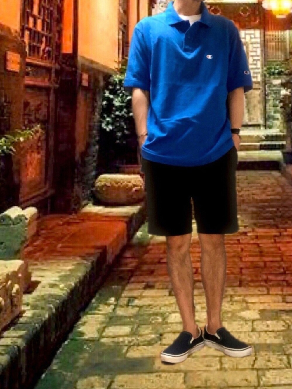 ポキB@ユニクロ勉強家(相互)のポロシャツ「Champion/チャンピオン ヘビーウェイト ワンポイント ロゴ ポロシャツ」を使ったコーディネート