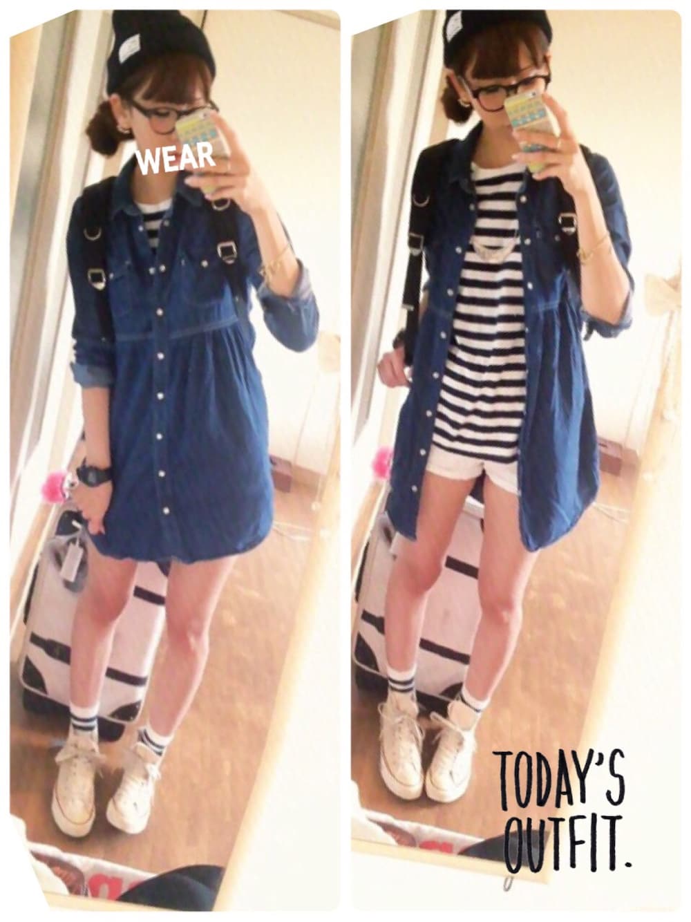 こんにちゎ\(⊙⊙)/ 今回はデニムシャツとボーダーTシャツのめちゃシンプルコーデやってみました\(⊙⊙)/♡♡ 最近、ニットキャップにめがねとゆぅ組み合わせにハマっとります! ZARAのボーダーTシャツは前回のコーデの着まわしです♡ いつもセーブ、いいね♡ フォロー本当にありがとぅございます♡♡嬉しかです( ᵒ̴̶̷̥́௰ ᵒ̴̶̷̣̥̀ )♡ 今日ゎぉ友達のネイルサロンに ネイルしに行って来ます♡☜ _(:3」∠)_♡☜ でゎでゎ〜( *`ω´)っ