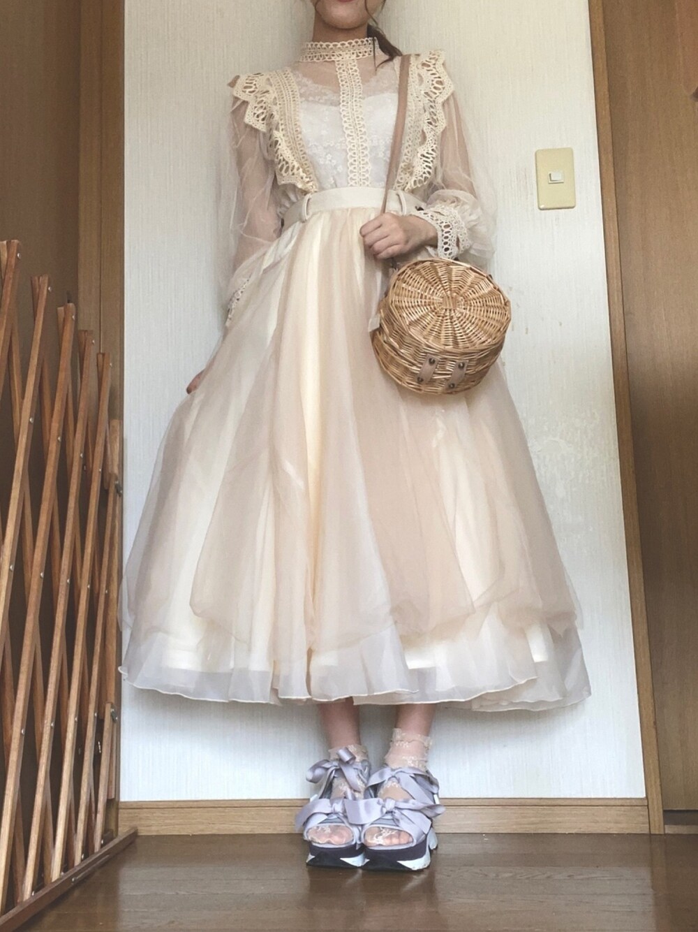 merryのボリュームチュールスカートとリボンスニーカーが可愛い、、😭