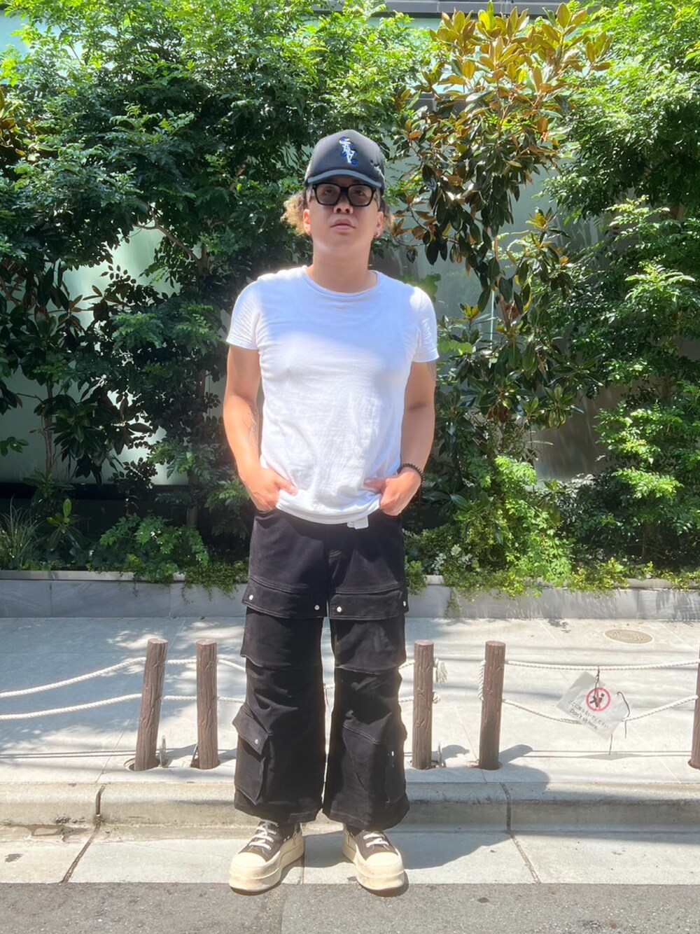 星川徹聖(LHP 裏原宿店)のデニムパンツ「DankeSchon/ダンケシェーン/FLOCKY DENIM FLARE CARGO PANTS」を使ったコーディネート