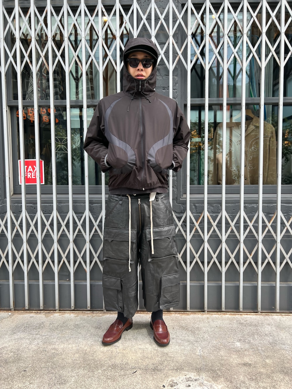 星川徹聖(LHP 裏原宿店)のカーゴパンツ「DankeSchon/ダンケシェーン/REPRO-LEATHER CARGO SHORTS」を使ったコーディネート