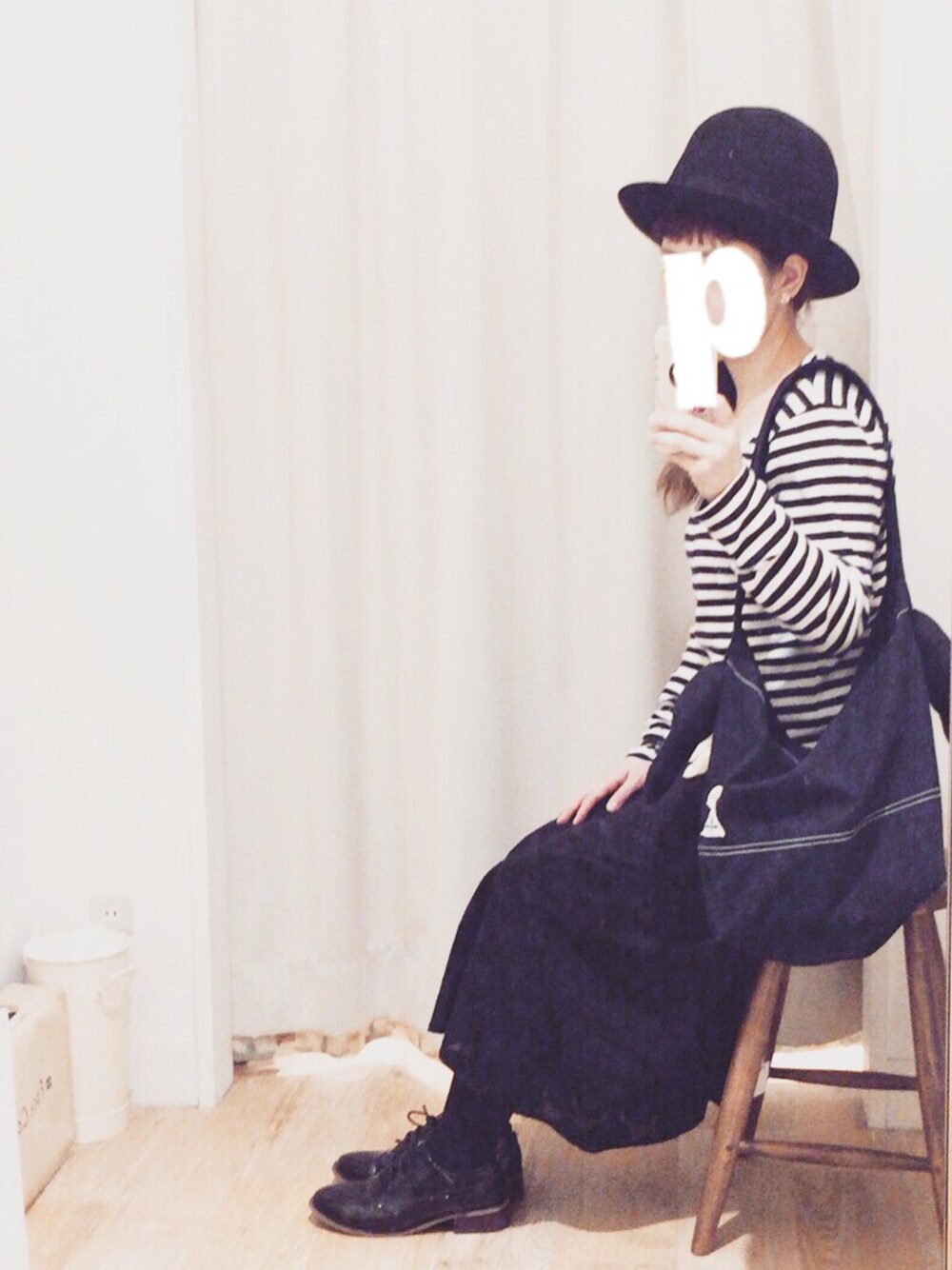 モノトーンブーム到来。 黒スカート、見えてないけど 大きめのドット柄でお気に入り( ^ω^ )