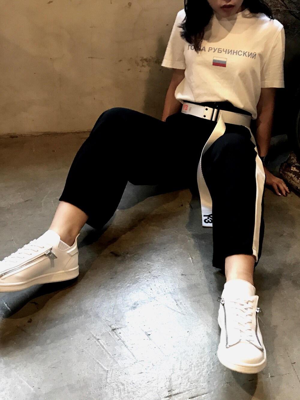 Peiwen ChiuのTシャツ/カットソー「GOSHA RUBCHINSKIY(ゴーシャ ラブチンスキー) LARGE LOGO TEE」を使ったコーディネート