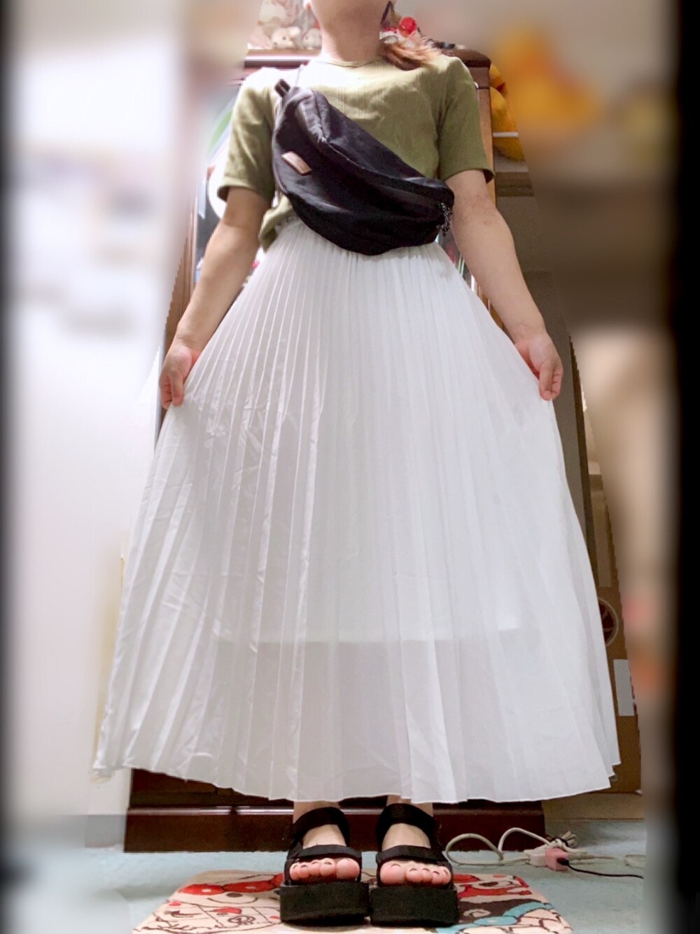 見ていただきありがとうございます🐰 ふわっとしたスカートがやっぱり好きなんだよね〜 本当はぺちゃんこのサンダルを合わせたいんだけど持ってないんだよね欲しいんだよね、でももう夏終わっちゃうよ(笑) 探してるんだけどドストライクなものが見つからずチ───(´-ω-`)───ン