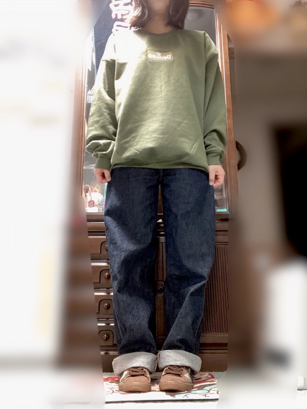 見ていただきありがとうございます︎ ᙏ̤̫͚ deviluseとcaptainstreetとの限定アイテム! カラーはオリーブ めためた可愛い😭😭 ゲット出来てとても嬉しい😭 頭載ってないけどNEW ERAのバケハ! これもかわいい! かわいいだらけ!☺️