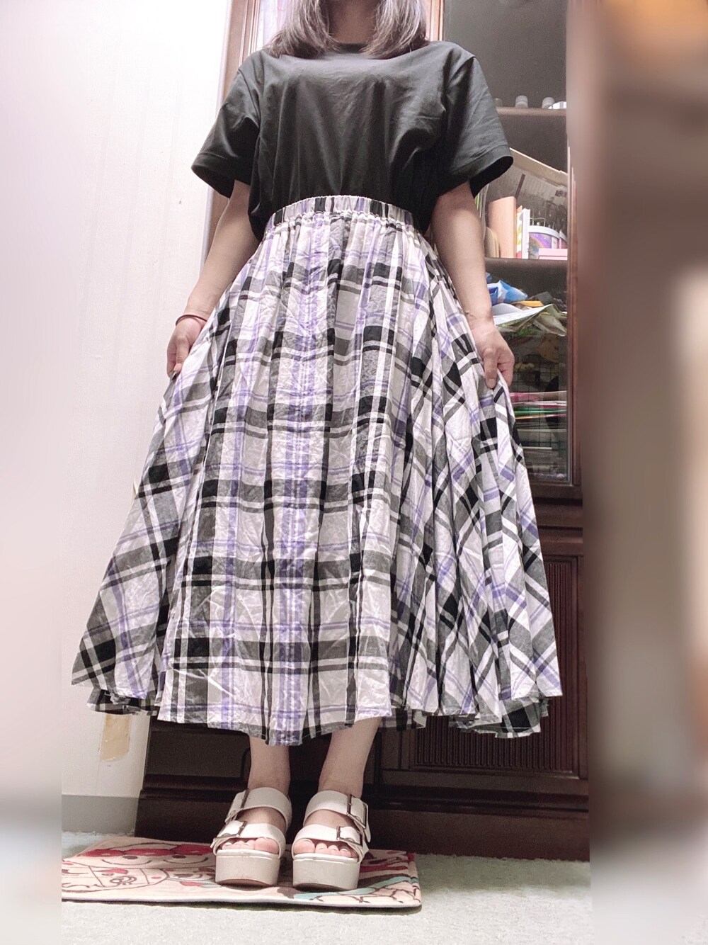 ぴょんすけのスカート「【19SS新作・Market】チェックマキシスカート」を使ったコーディネート