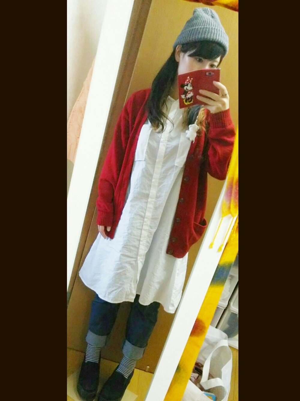 貰い物の赤いカーディガンが着たくて…