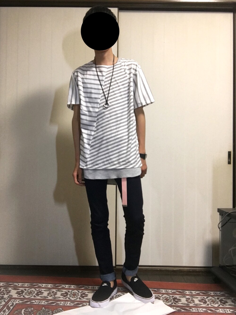 みなさんこんばんは! 最近あっつくて泣けますね笑 せめてもう少し涼しくなってほしいです😇 今日は初めてボーガーのカットソー?を使って見たコーデです!これかなり安く売られてたんでラッキーでした☺️ 正直にいえば小さい頃ボーダーを着ている人をみると囚人服だとか思ったものです😇😇😇😇 もしかしたら自分も思われたんかな?☺️☺️☺️ でも着て見たらとても良い感じだった笑 あとはピンクのガチャベルトとGUのスキニーデニムがポイントですね! ピンクは差し色として使って見たら案外良い笑 スキニーはやっぱ一番フィットしますね🤑 あとはスリッポン使ってロールアップもして足首だしかこともポイントです! このコーデが良いと思っていただけたら いいね❤️ お気に入り コメント📝 フォロー😻 よろしくお願いします! カットソー1 タンクs スキニー” レディースの一番小さいの” ベルトフリー スリッポン25.5