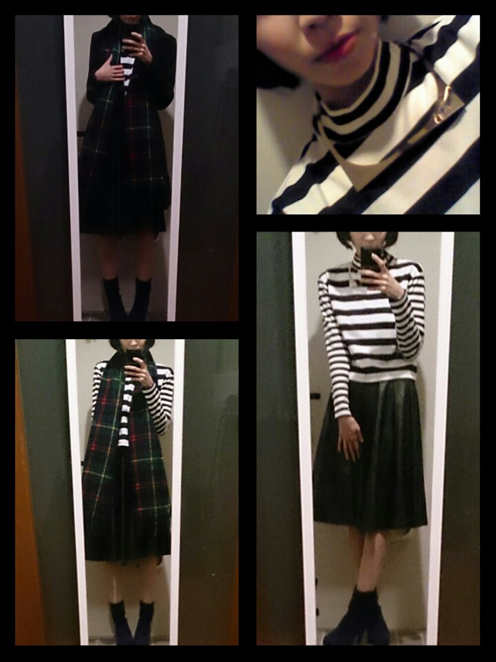 *outer*:NET SHOP *tops*:MURUA *bottoms*:NET SHOP *bag*:GIVENCHY *shoes*:NET SHOP *necklace*:MURUA *socks*:tutuanna *ストール*:NET SHOP 〇ボーダー×チェックで柄柄〇