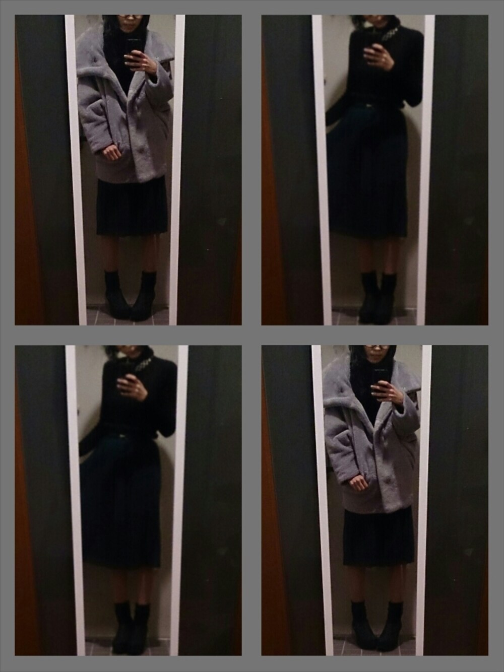 *outer*:NET SHOP *tops*:NET SHOP *bottoms*:spray *bag*:GIVENCHY *shoes*:NET SHOP *necklace*:NET SHOP *スヌード*:NET SHOP ★もこもこgray×プリーツgreen★
