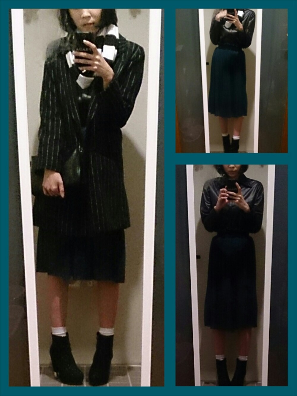 *outer*:NET SHOP *tops*:NET SHOP *bottoms*:spray *bag*:EMODA *shoes*:NET SHOP *necklace*:NET SHOP *スヌード*:adidas ▽THE モノトーン(〃ω〃)+green▽
