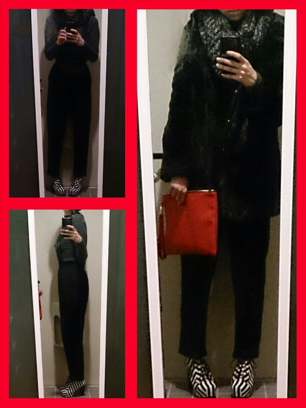 *outer*:moussy *tops*:NET SHOP *bottoms*:NET SHOP *bag*:MURUA *shoes*:NET SHOP *necklace*:雑貨屋 *スヌード:NET SHOP 『オールブラック×赤コーデ』 ストライプのブーツもpoint\(^-^)/