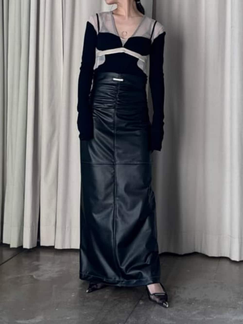 PRANK PROJECT(PRANK PROJECT)のスカート「シンセティックレザーマキシスカート / Synthetic Leather Maxi Skirt」を使ったコーディネート