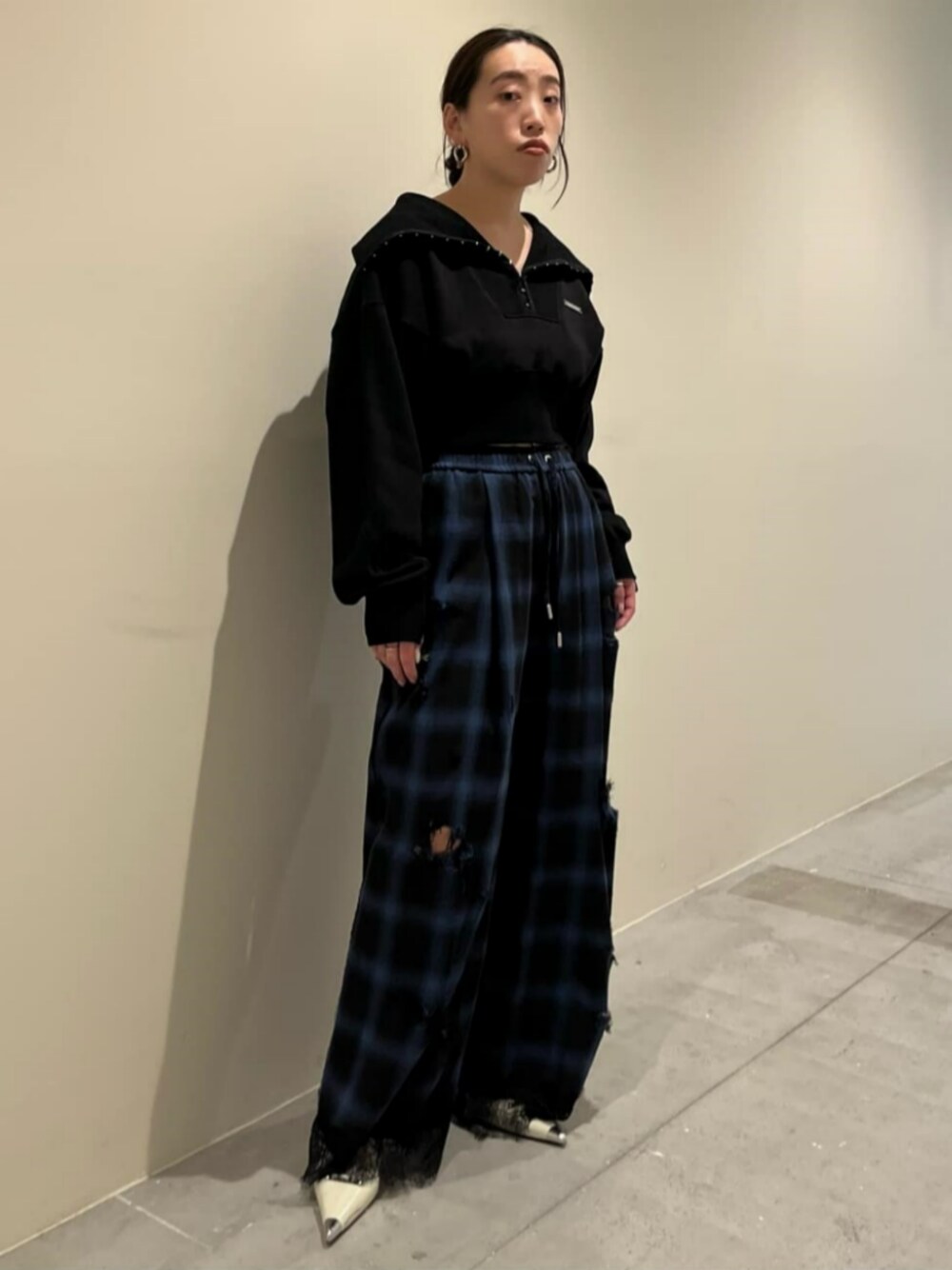 PRANK PROJECT(PRANK PROJECT)のスウェット「フックアイカラークロップドスウェット / Hook Eye Collar Cropped Sweatshirt」を使ったコーディネート