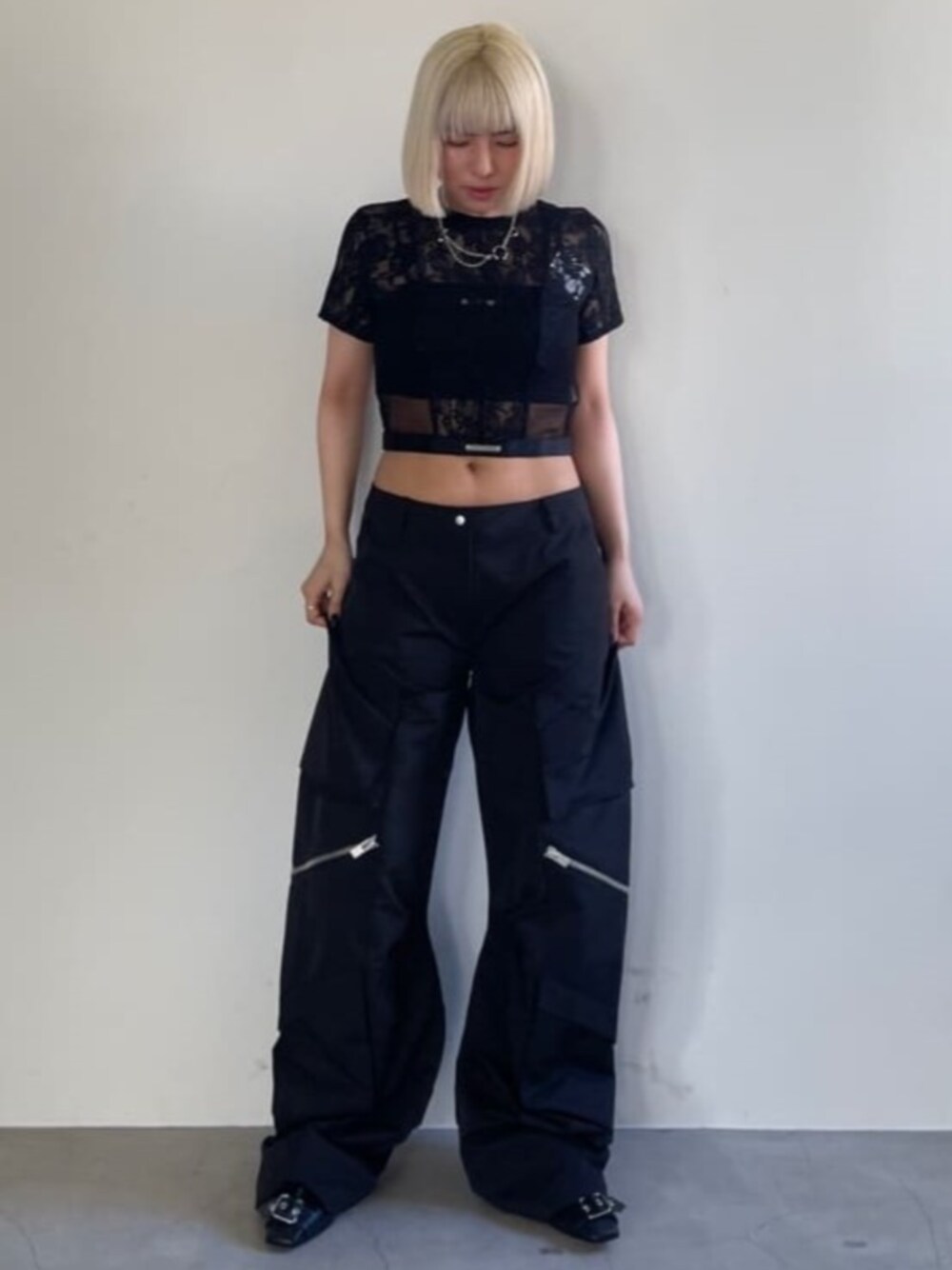 PRANK PROJECT(PRANK PROJECT)のTシャツ/カットソー「レースクロップドTEE / Lace Cropped Tee」を使ったコーディネート