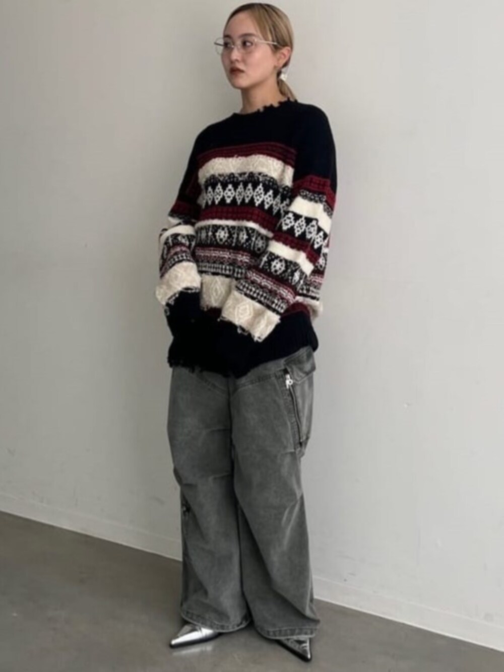 PRANK PROJECT(PRANK PROJECT)のニット/セーター「スラブダメージノルディックニット/Slub Damaged Nordic Knit」を使ったコーディネート