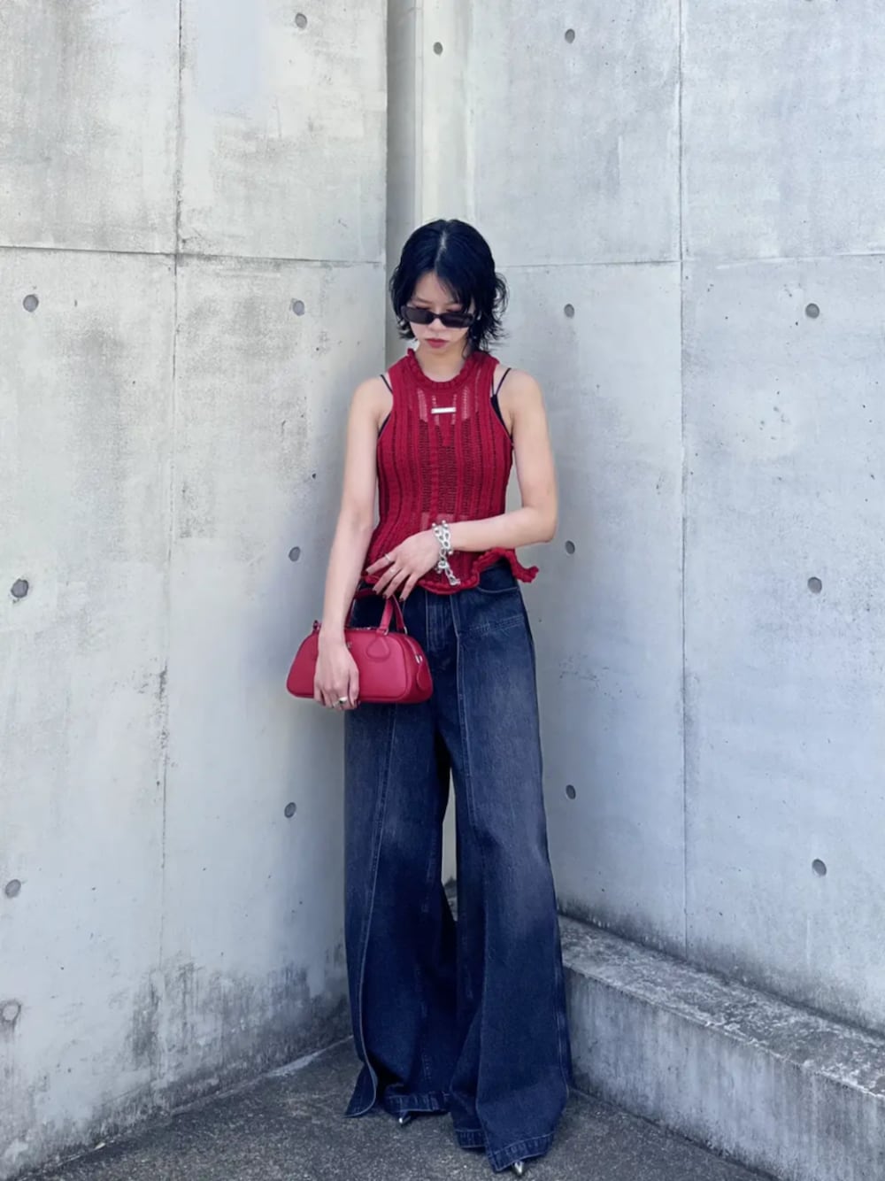 PRANK PROJECT(PRANK PROJECT)のタンクトップ「ウェーブヘムポップコーンニットタンク / Wave Hem Popcorn Knit Tank」を使ったコーディネート