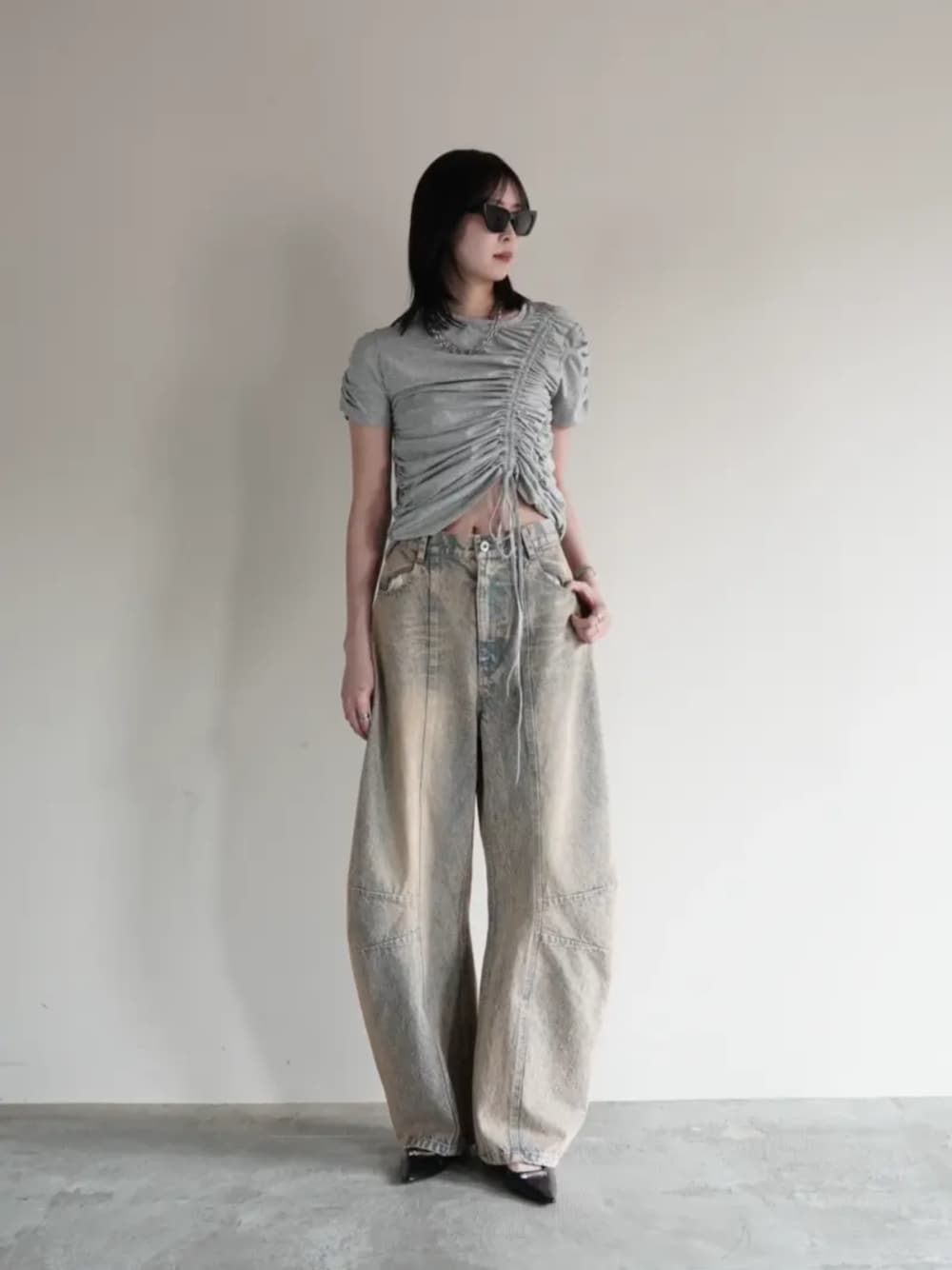 PRANK PROJECT(PRANK PROJECT)のTシャツ/カットソー「ドロストシャーリングTシャツ / Drost Shirring Tee」を使ったコーディネート
