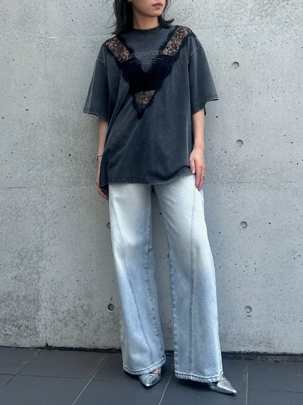 PRANK PROJECT(PRANK PROJECT)のTシャツ/カットソー「Vカットレースロゴトップ / V Cut Lace Logo Top」を使ったコーディネート