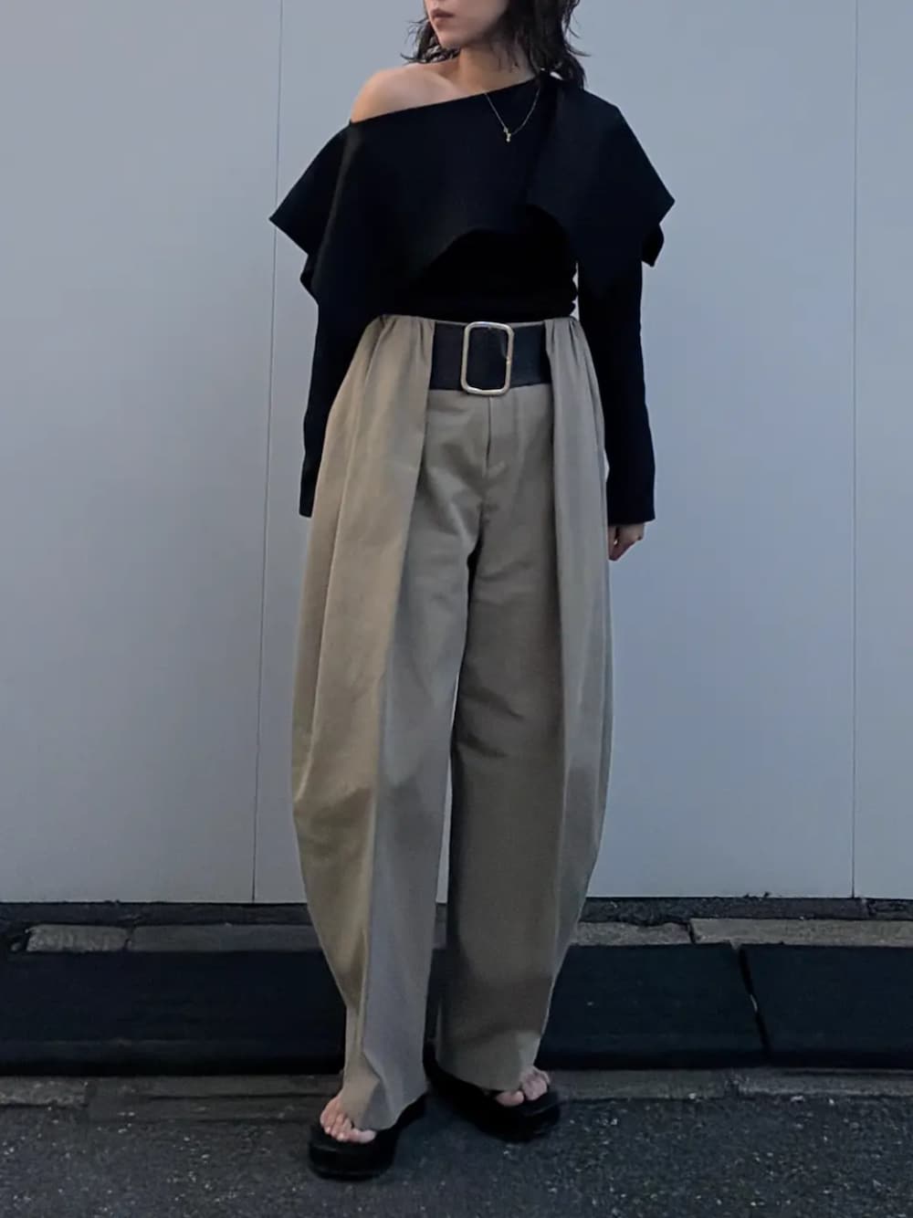 PRANK PROJECT(PRANK PROJECT)のスラックス「【Pre-Order】ハイウエストベルトタックパンツ / High-Waist Belted Tuck Pants」を使ったコーディネート