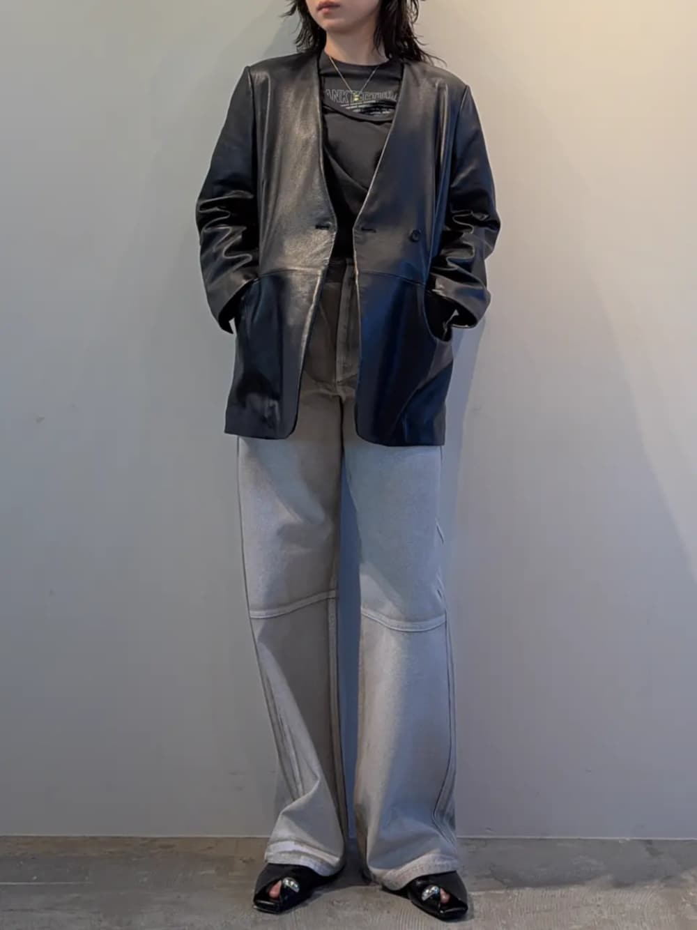 ノーカラージャケット (ブラック系)ノーカラージャケット