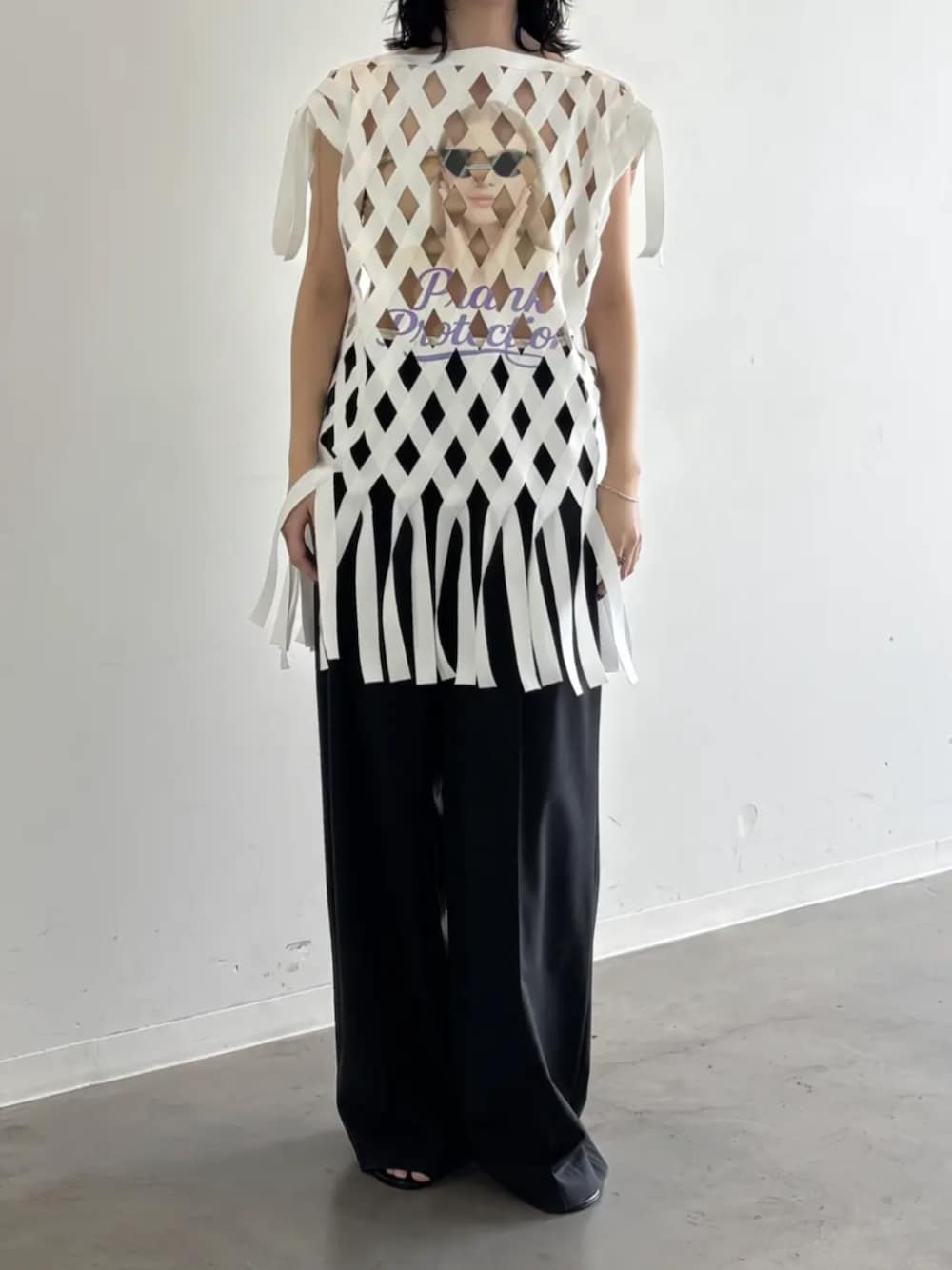 PRANK PROJECT(PRANK PROJECT)のその他トップス「【2026Spring Pre-Order】フェイスプリントリボンTシャツ / Woven Grid "aesthetic" Top」を使ったコーディネート