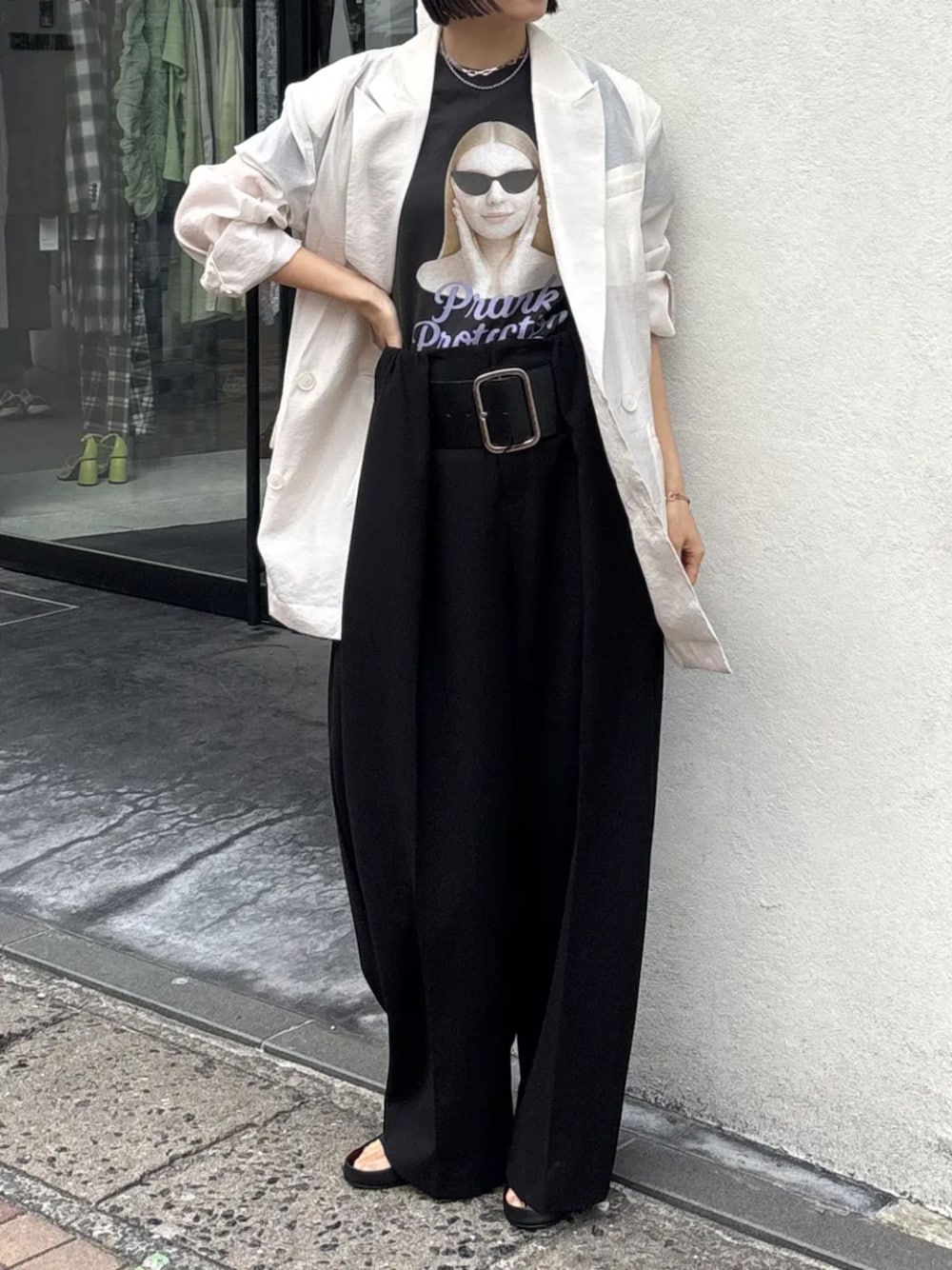 PRANK PROJECT(PRANK PROJECT)のスラックス「【Pre-Order】ハイウエストベルトタックパンツ / High-Waist Belted Tuck Pants」を使ったコーディネート