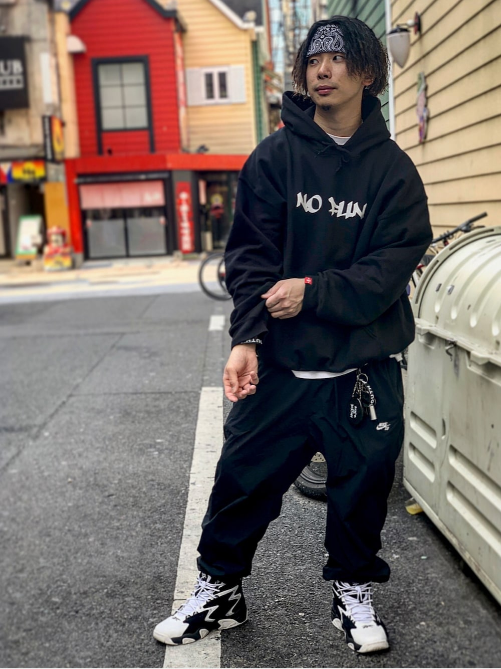 オールブラック、着るのは簡単じゃけんこそ、アイテムのこだわり。って感じ。 パーカーはグレイビー。 スニーカーはメヴィウス。