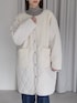PREFERIR_web(PREFERIR OFFICIAL)のノーカラーコート「ノーカラーキルティング×ボア ロングコート」を使ったコーディネート