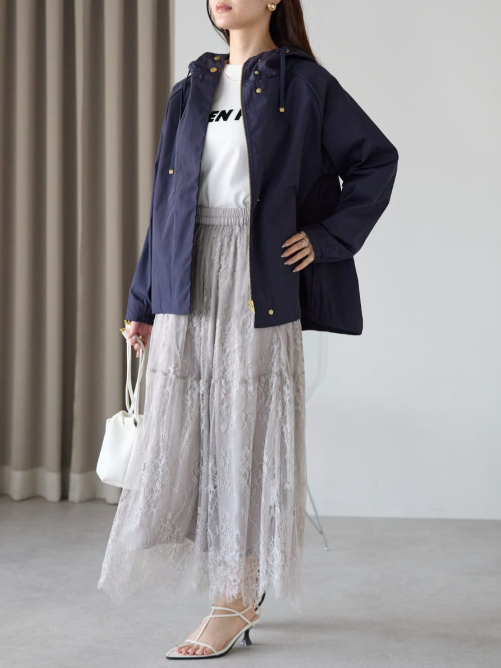 PREFERIR_web(PREFERIR OFFICIAL)のスカート「【春定番】レースティアードロングスカート(ペチコート付き)」を使ったコーディネート