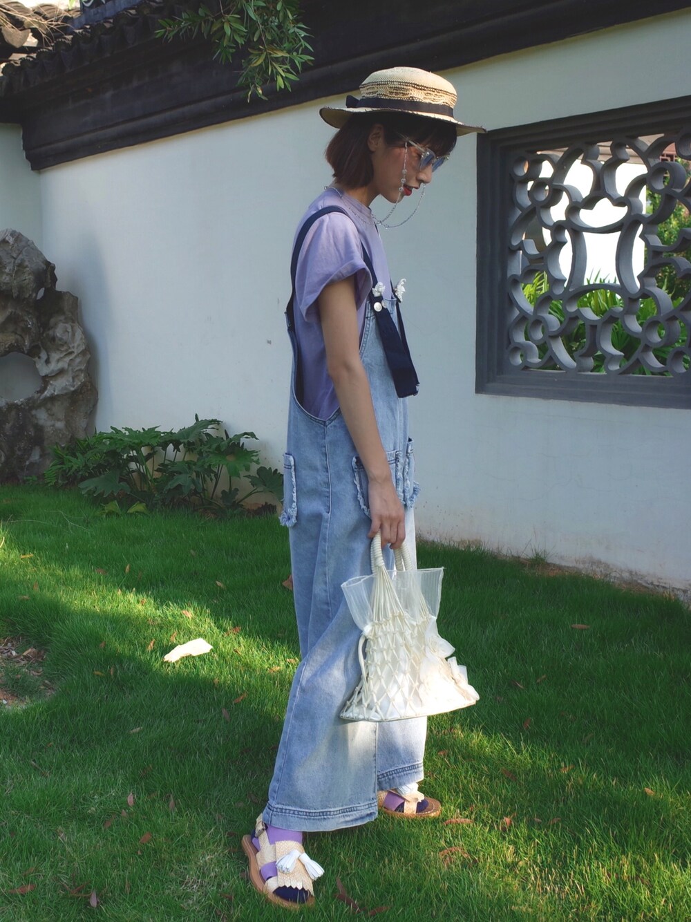 简单的纯色Tee 真的是衣柜里必备的单品! 搭配浅蓝色的水洗overall 休闲的惬意感立即就展示出来 加上它是宽松的版型所以真的不挑人 再加一些点睛的小饰品 整体穿搭的时髦感就up up up ~