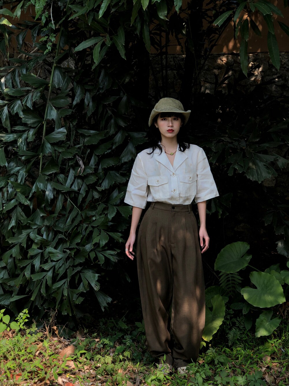 【 藏 在 森 林 里 】 工装感的手工植物染衬衫 X 鶯茶色休闲西裤