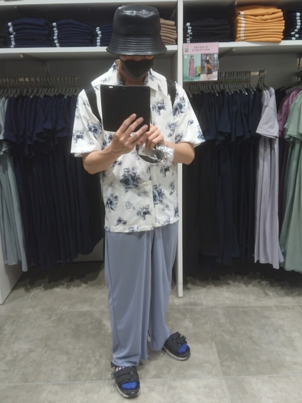 ハット バケットハット WEGO トップス 柄シャツ HALHAM インナー Tシャツ GU ボトムス カラーワイドパンツ GU シューズ サンダル ルイス