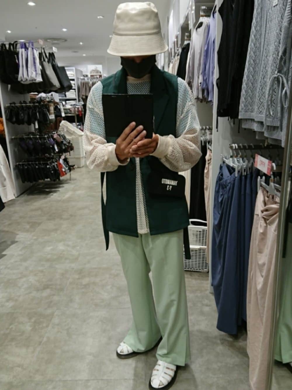 ハット バケットハット ローリーズファーム トップス ベスト エレンカーレ・デュエ インナー メッシュ clear カラーTシャツ GU ボトムス スリットパンツ GU シューズ グルカサンダル ルイス