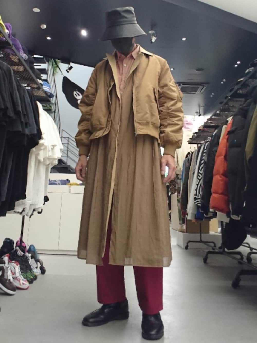 DouDouの、シアーレイヤード、ボタンレストレンチコートに アングリッドのサイドZipスリットMA-1を合わせて アウターオンアウターのスタイリング☺️ ハット バケットハット スピンズ アウター サイドZipスリットMA-1 アングリッド ボタンレストレンチコート DouDou インナー カラーシャツ GU ボトムス カラーパンツ ジャーナルスタンダード シューズ ドレスシューズ ドクターマーチン