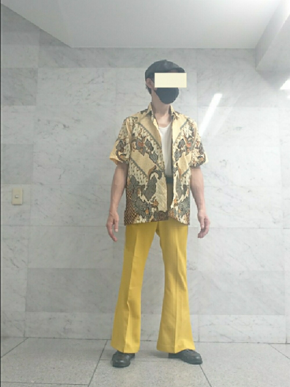 ヘッドギア ハンチング帽 WEGO トップス 柄シャツ Kresnaduta タンクトップ H&M ボトムス カラースラックス ディスコート シューズ グルカサンダル BEAMS instagram ↓ https://instagram.com/shopprevail/ WEAR ↓ wear.jp/prevaill/