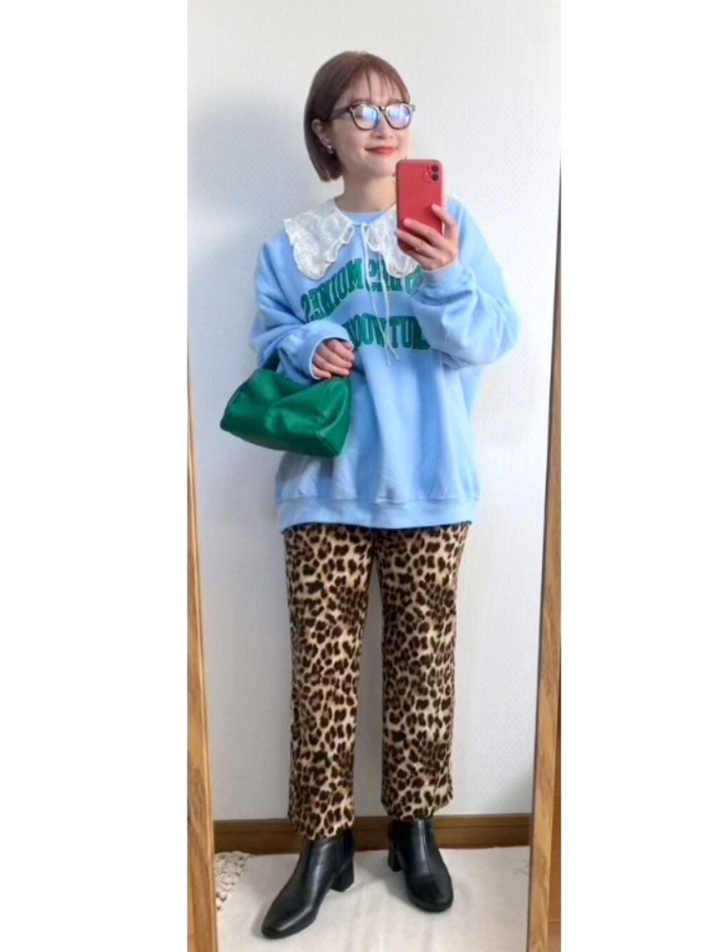 たかこのスウェット「ビッグシルエット 裏起毛カレッジロゴスウェット」を使ったコーディネート