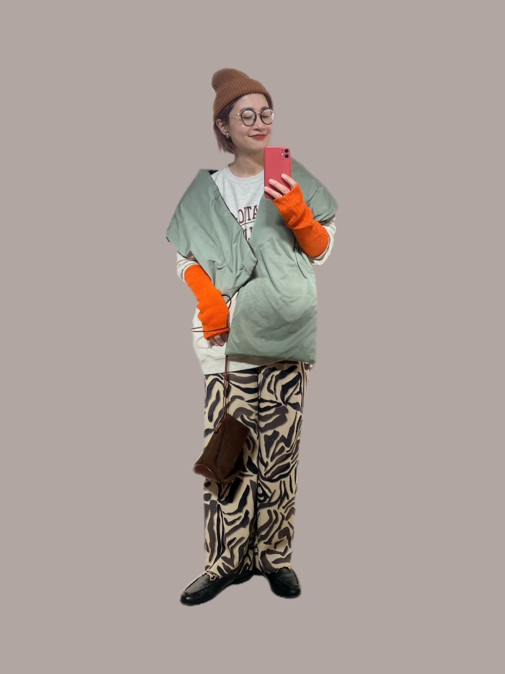 楽ちんパンツ選びがち〜🐶 アームウォーマーって可愛いしあったかいし便利やし🤝