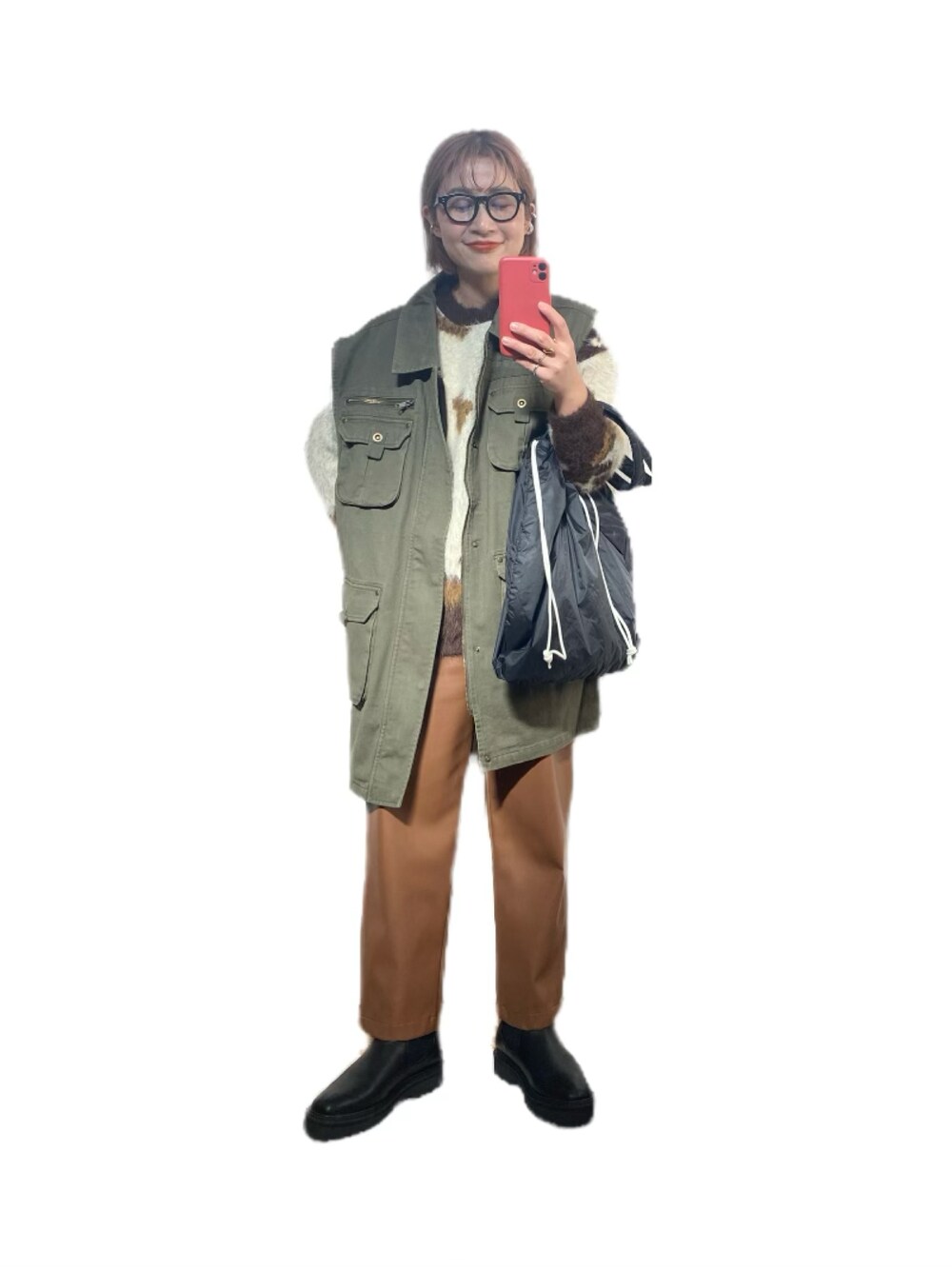 柔らかミリタリー🐶 ベストは前に買ってて今頃着るっていう… ニットとやったら着れるよねって 何なら暑がりの私はロンTでもいけるな🤝 いややめとけ…