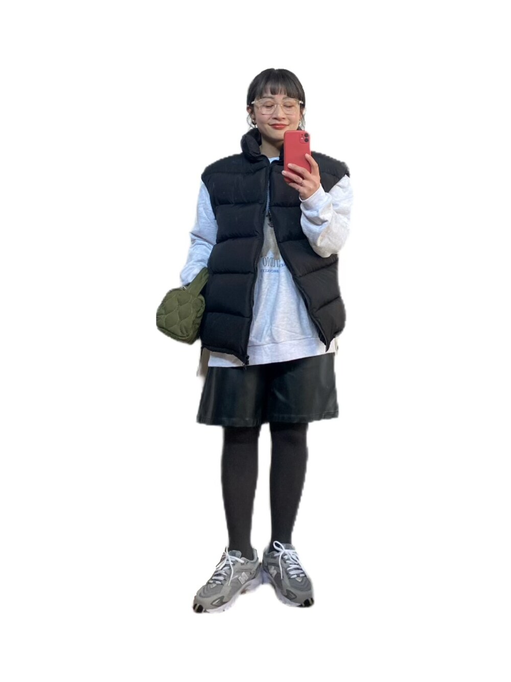 ダウンベスト色形で悩みに悩んでこれにしたらお洒落すぎるmaccoりんが短いの着ててそれなぁって短いのもやっぱり可愛いなぁってうだうだ言ってる❤️🔥お洒落な人が着てるとさらに可愛く見える🙈❤️🔥 でもこのベストもお気に入り🐶 でシンプル〜スポーティ〜〜