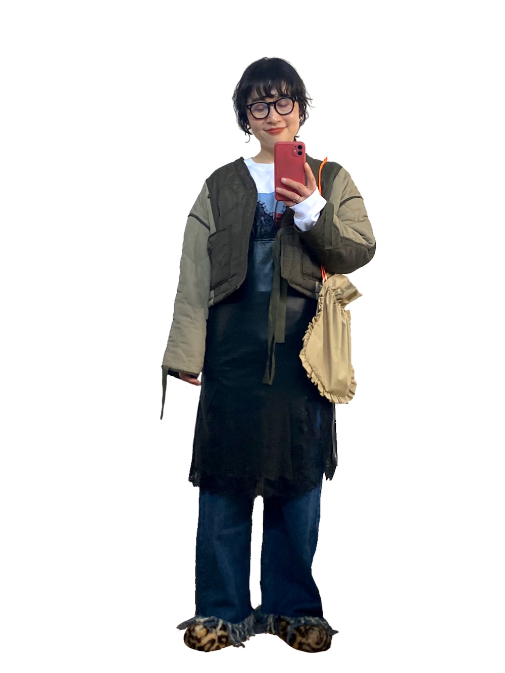 キャミワンピがレザーでレースで可愛いんよね〜 ごわついてるけども。。