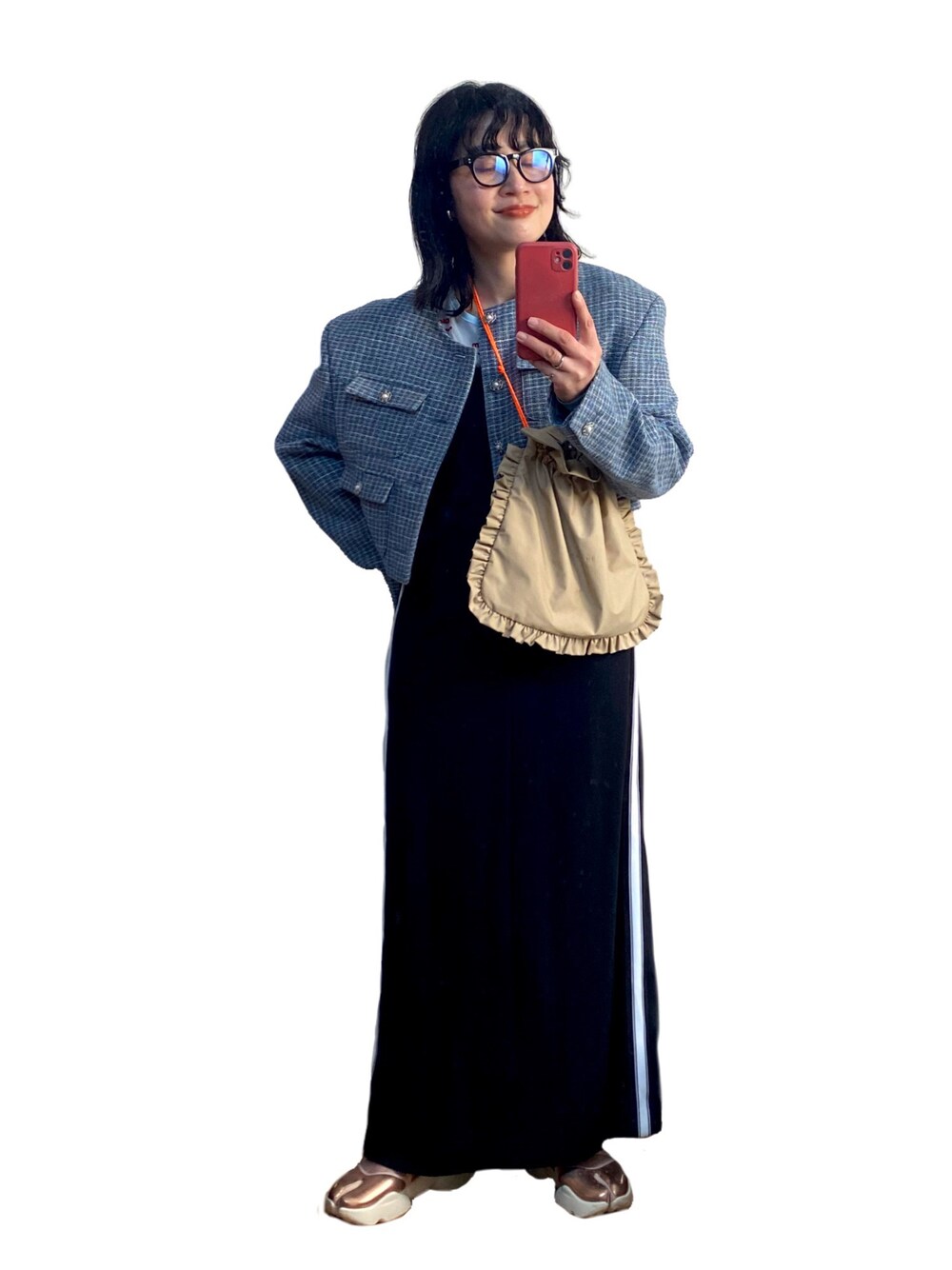 たかこのノーカラージャケット「TWEED JACKET ツイードジャケット」を使ったコーディネート